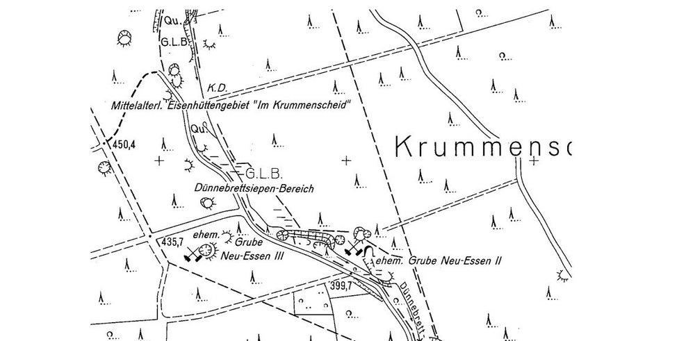 Oberhalb des Stadtteils Rathmecke befindet sich innerhalb des Krummenscheider Forstes ein Bereich, in dem mittelalterliche und frühneuzeitliche Relikte der Eisengewinnung und -verarbeitung liegen. Eine Überprüfung hat eine nahezu vollständige Unberührtheit dieses Gebietes ergeben. Zu erkennen sind wenigstens zwei Stollenmundlöcher mit einem Licht- bzw. Luftschacht, etwa 23 Schlackenhalden, in deren Nähe sich noch nicht identifizierte Öfen befinden müssen, und nicht zählbare kleine Schürfstellen, in denen Erze aufgespürt werden sollten. Der Bereich dokumentiert sehr anschaulich mittelalterliche Wirtschaftsgeschichte in dem für den Märkischen Kreis so wichtigen Bergbau.