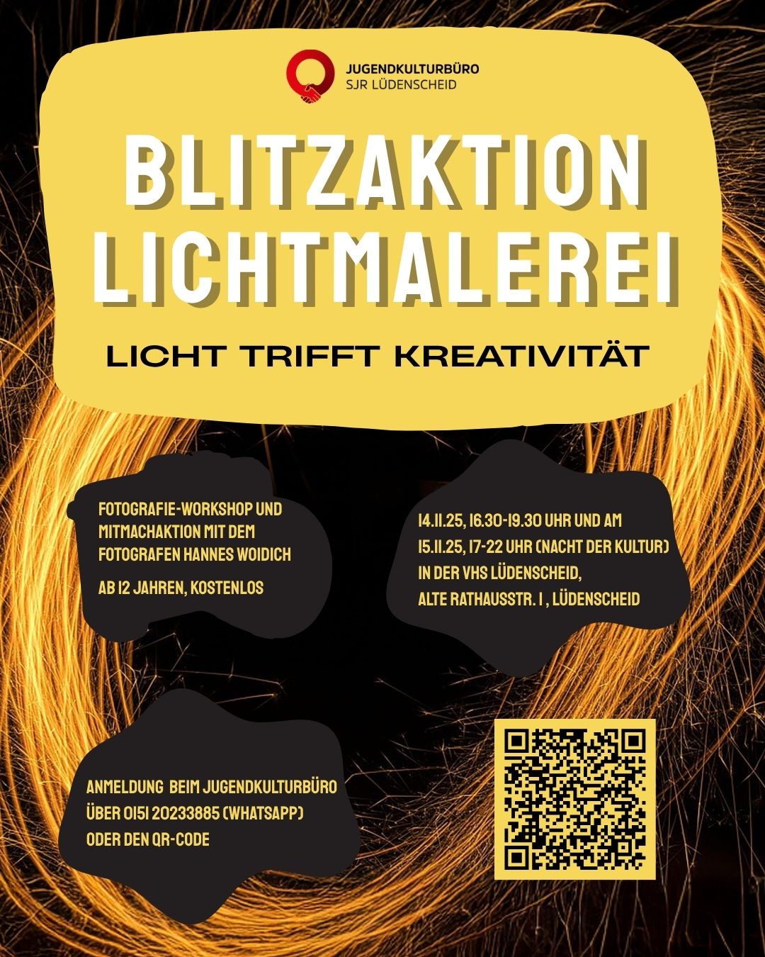 Am 14. November lädt das Jugendkulturbüro zu einem ganz besonderen Fotoworkshop ein: Unter der Leitung eines professionellen Fotografen entdecken Jugendliche, wie man mit Licht, Bewegung und Kamera spannende, malerische Kunstwerke erschaffen kann. Der Workshop richtet sich an alle, die Lust auf kreative Experimente haben.