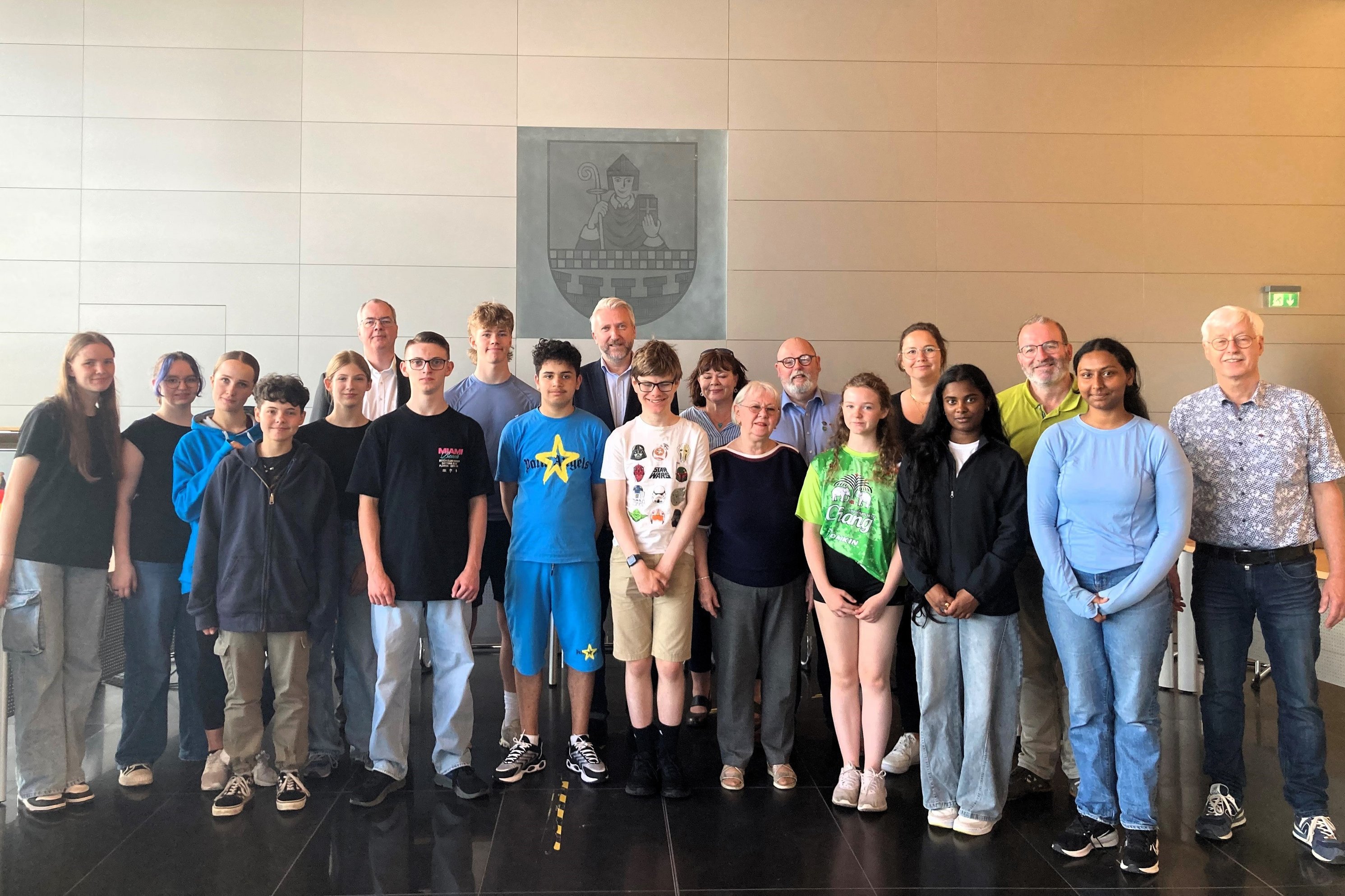 Im Ratssaal des Rathauses begrüßte Bürgermeister Sebastian Wagemeyer am Freitag, 4. Juli, eine Gruppe Jugendlicher aus Brighouse, die zurzeit im…