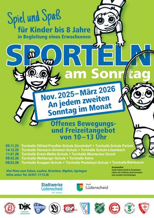 Die erste Möglichkeit zum „Sporteln am Sonntag“ in der neuen Saison 2025/26 bietet sich für bewegungsfreudige Eltern und Kinder bis acht Jahren am kommenden Sonntag, 9. November.