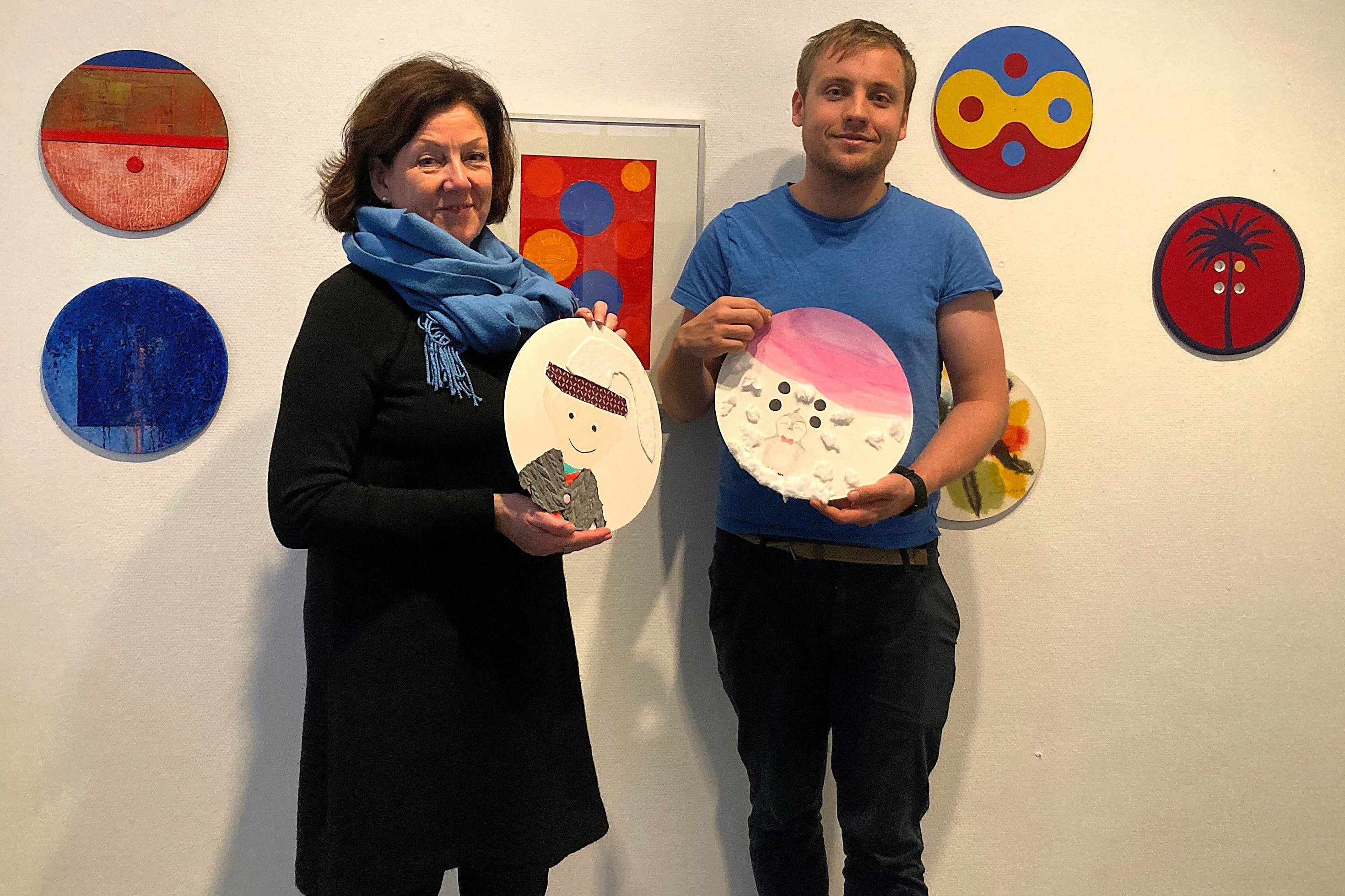 Zuerst entdecken sie die aktuelle Ausstellung „KUNST & KNOPF“ in der Städtischen Galerie. Dort sind fast hundert bunte Kreise zu sehen, die manchmal ausschauen wir Riesenknöpfe. Diese 30 Zentimeter breiten, runden Holzscheiben wurden von Künstlern und Künstlerinnen nicht nur gemalt, sondern auch gezeichnet, modelliert, geklebt und sogar gebaut. So entstanden hier ganz unterschiedliche, außergewöhnliche Kunstobjekte. Die Kunstwerke der „Großen“ inspirieren dann zu eigenen Ideen Ein besonderer Dank gilt dem Lüdenscheider Unternehmen Schwarzhaupt, das der Galerie ganz besonderes Baselmaterial zur Verfügung gestellt hat – und passenderweise in der Vergangenheit auch Knöpfe hergestellt hat.