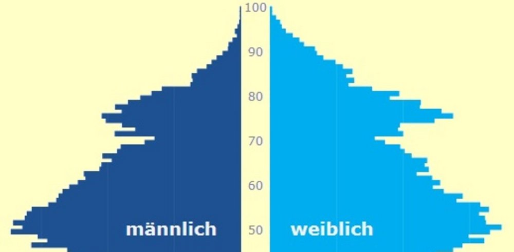Seit 2010 ist die Altersstruktur relativ stabil geblieben. Für die Zukunft ist davon auszugehen, dass immer weniger Menschen in der mittleren Generation einem fast gleichbleibenden Anteil an Jugendlichen und einem stark ansteigenden Anteil an Senioren*innen gegenübersteht. Dabei darf aber nicht außer Acht gelassen werden, dass in der gleichen Zeit die Bevölkerung sinken wird.Der Anteil der Kinder und Jugendlichen ist von 16,9% (31.12.2010) auf 16,4% (31.12.2020) gesunken. Die Zahl ging von 12.783 um 635 auf 12.148 Kinder und Jugendliche zurück. In der mittleren Generation ging die Zahl von 46.946 (62,1%) um 1.382 auf 45.564 (61,6%) Personen zum 31.12.2020 zurück, während die Anzahl der Personen im gleichen Zeitraum über 65 Jahre von 15.903 (21,0%) auf 16.200 (21,9%) zunahm.Die Prognose geht bis Ende 2040 bei der mittleren Generation von einem Bevölkerungsverlust von 7.829 auf 37.735 Personen aus. Bei den Kindern und Jugendlichen wird von einem Verlust von 987 auf 11.161 Personen ausgegangen. Die Zahl der über 65-jährigen wird nach der aktuellen Prognose in dieser Zeit um 4.506 auf 20.706 Personen steigen.