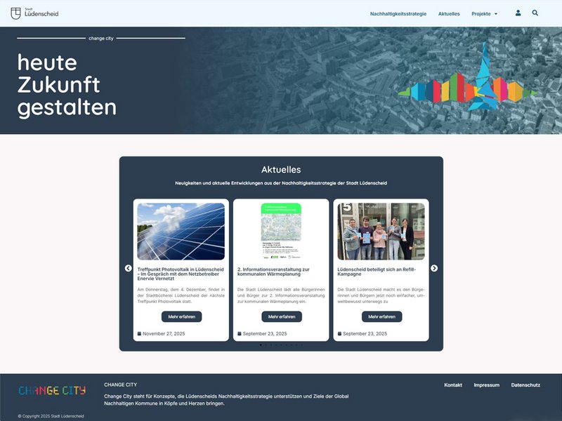 Seit vielen Jahren beschäftigt sich die Stadt Lüdenscheid mit dem Thema Nachhaltigkeit – bereits zu Beginn der 2000er Jahre wurde ein Agendabüro als Stabsstelle eingerichtet. Besonders intensiviert und strategisch untermauert wurde das Thema Nachhaltigkeit seit 2019. Mit der Vielzahl hier aufgeführter unterschiedlicher Bausteine konnte sich die Stadt Lüdenscheid Ende 2024 gegen zahlreiche kommunale Bewerber weltweit durchsetzen und hat neben Buenos Aires (Argentinien), Freetown (Sierra Leone) und Mesa (USA) den SDG Innovation Award 2024 erhalten.